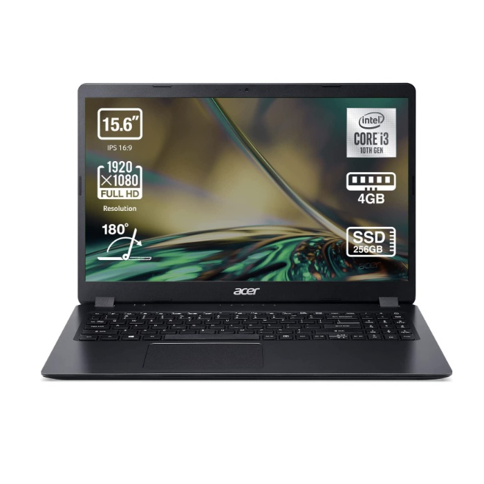 Concernant l’écran de cet Acer, il faut préciser que celui-ci est de 15,6 pouces et qu’il a une résolution Full HDintégrant également un filtre spécial lumière bleue qui offre un confort supplémentaire pour nos yeux. Au niveau de la batterie, il est conçu pour tenir une journée loin de chez soi.