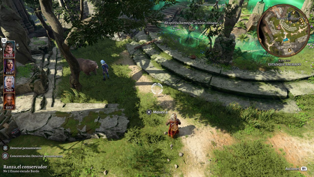 Baldur’s Gate 3 est un RPG à la troisième personne dans lequel nous parcourrons librement un monde ouvert. De cette façon, la gestion du personnage que nous choisissons se fait en temps réel avec le joystick gauche, en pouvant contrôler la caméra (la zoomer, la faire pivoter et l’éloigner) avec celui de droite, un schéma de contrôle très traditionnel pour ce type de propositions. On peut également choisir, si l’on appuie sur le bouton L3, une manipulation plus similaire à celle que l’on trouverait sur un PC ; Avec L3, on active un pointeur par lequel on peut choisir le point où l’on veut que le personnage aille.