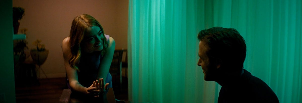 “Il y a un plan que j’aime particulièrement et qui n’a pas l’air très compliqué, mais c’est Emma entrant dans son appartement. Ryan joue déjà du piano, elle pose son manteau, Ryan commence à chanter City of Stars et Emma se joint à elle. Au départ, nous essayions de le tracer avec, je pense, une mini-grue à l’intérieur. Il avait un peu plus de complexité et ne se sentait tout simplement pas assez spontané. C’est la technique de caméra que j’avais conçue qui a gêné cette prise de vue. Ce qui devrait être un moment simple, authentique et brut entre eux. Ils chantent en direct et le piano est en direct, il fallait donc qu’il y ait un élément documentaire. Et je le ruinais.