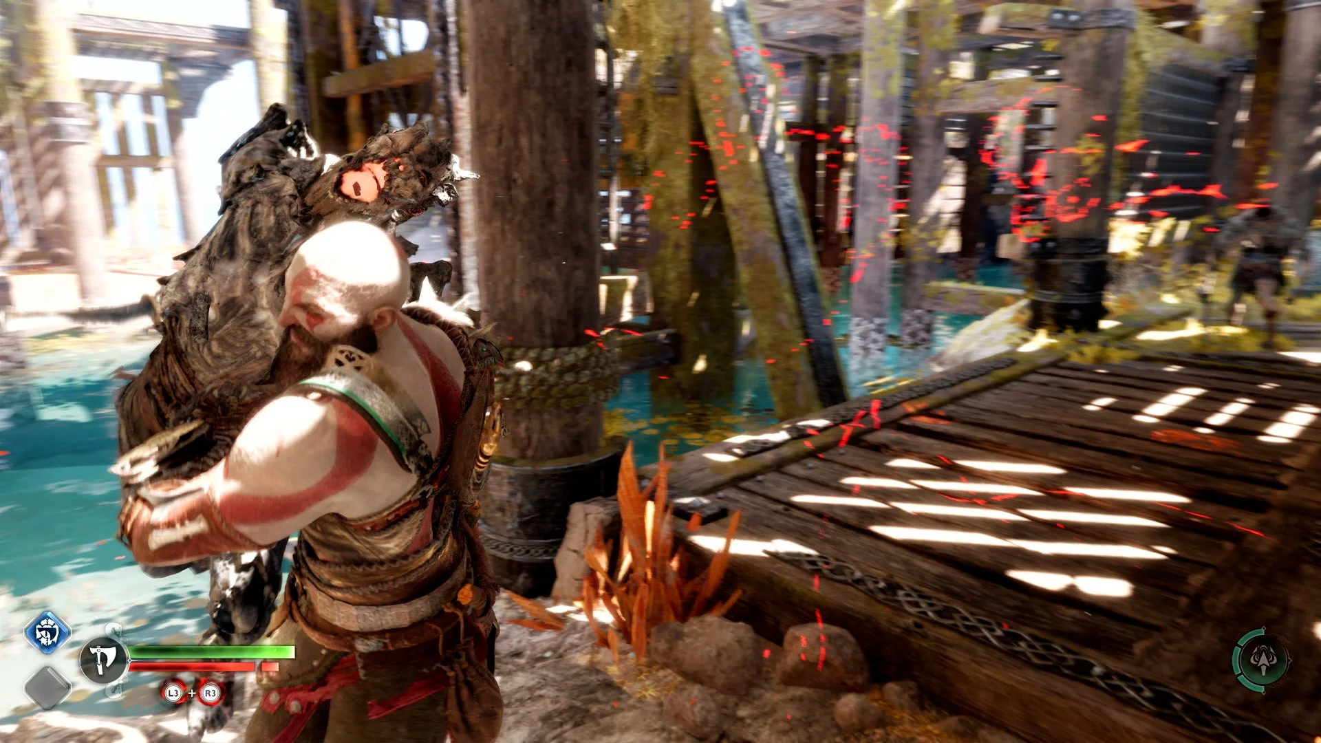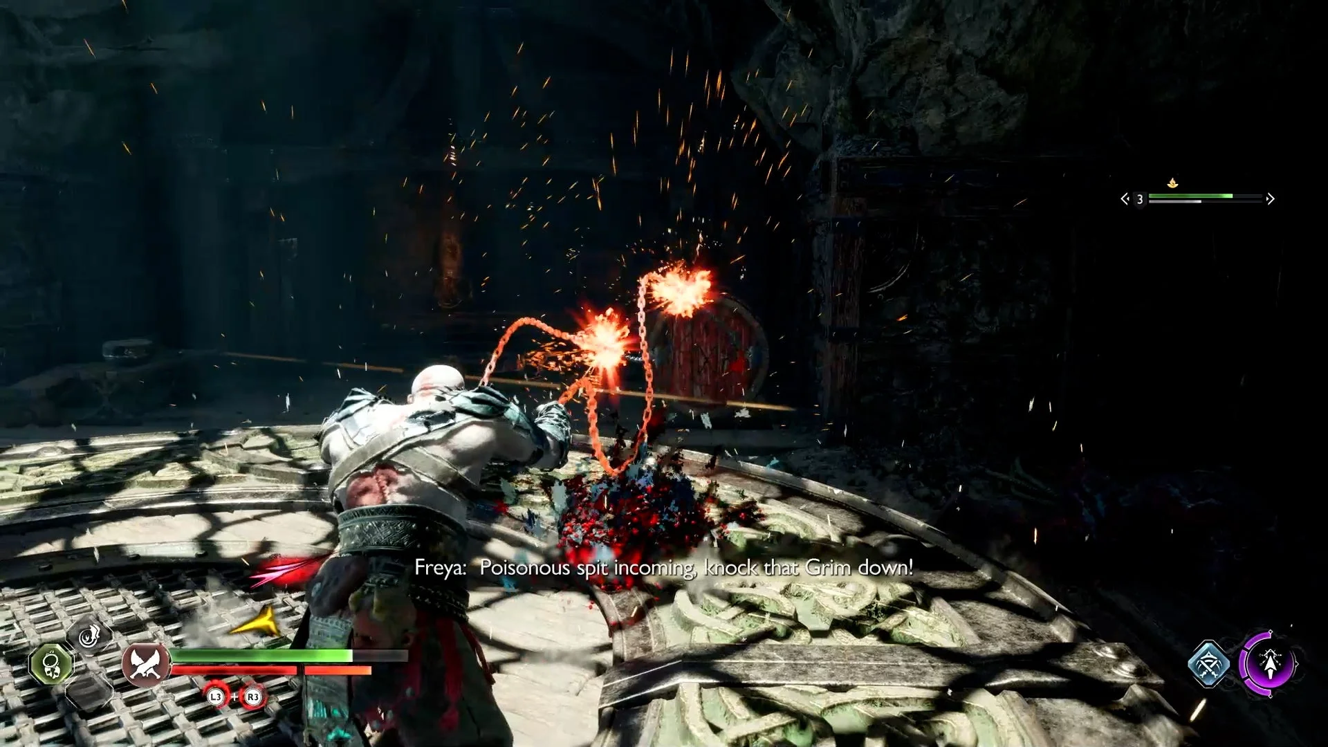- Dans différents royaumes, vous remarquerez peut-être certains dangers ou objets dans un combat qui peuvent être utilisés contre d’autres ennemis. Lancer votre hache sur des pierres crépusculaires peut étourdir les ennemis, tandis que les fleurs vénéneuses de Vanaheim peuvent être activées pour cracher des toxines sur les ennemis proches.
