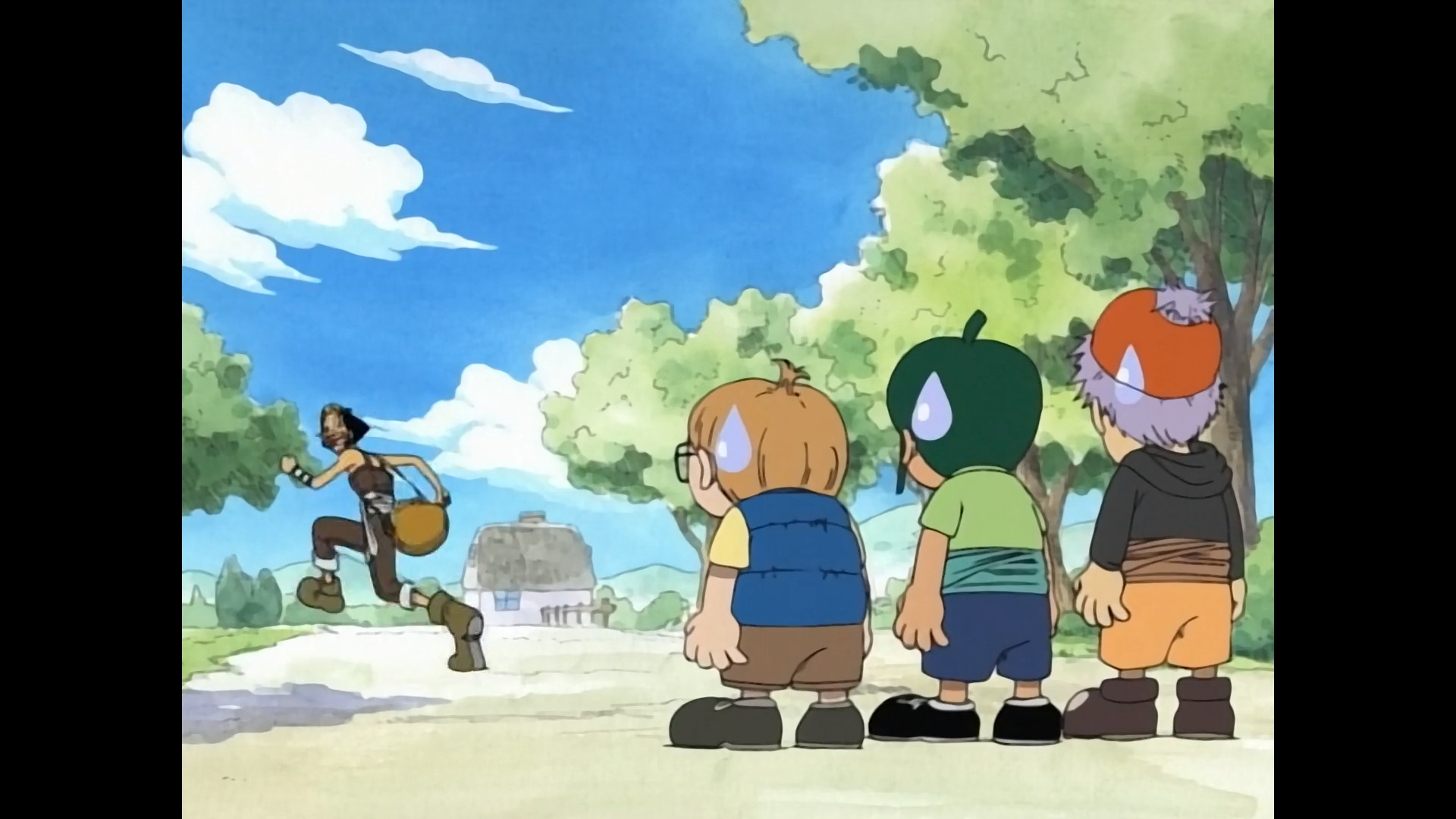 L’équipage d’Ussop (Ninjin, Piiman et Tamanegi) n’apparaît pas, et la première rencontre d’Ussop avec Luffy et son équipage finit par être totalement différente. Avant, Ussop et son équipage croyaient qu’ils devaient défendre le village contre les Chapeaux de Paille. Mais sans Ninjin, Piiman et Tamenegi, son introduction à Luffy, Nami et Zoro est beaucoup moins conflictuelle. Du moins en ce qui concerne ces deux groupes.