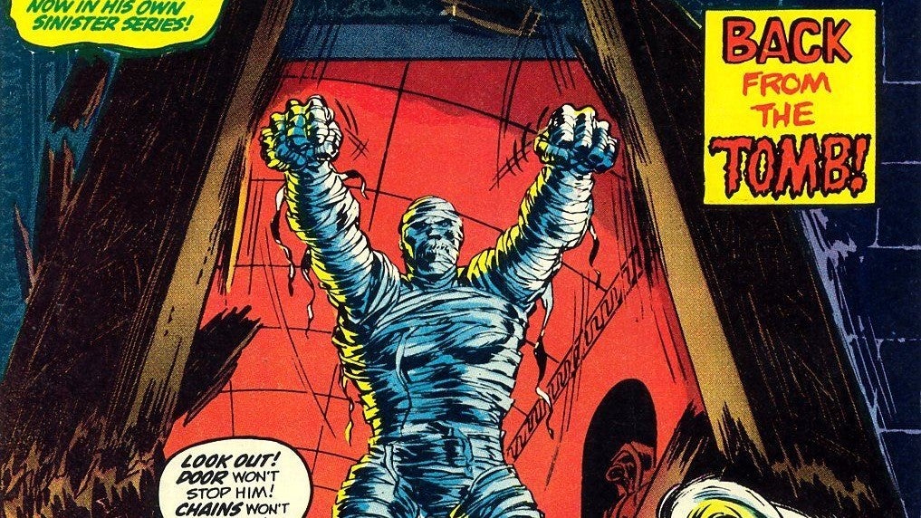 Marvel a même un personnage de momie pour compléter la ligne classique inspirée des monstres universels. N’Kantu est un chef nord-africain qui est asservi par un pharaon égyptien et soumis à un horrible rituel de momification. La soi-disant “momie vivante” se réveille dans les temps modernes. Après un bref déchaînement, son esprit est restauré et N’Kantu devient un héros, protégeant les mortels du royaume surnaturel.