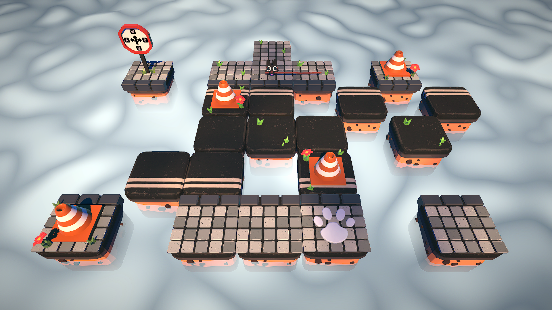 Avec ce principe simple, un jeu de puzzle sur plateau carré carréoù notre objectif est d’emmener le club du point de départ jusqu’à un marquage au sol en forme d’empreinte de pas. Il y aura une série d’obstacles ce qu’il faut éviter grâce à trois mécanismes de base : bouger, tourner et changer la position dans laquelle on tient le bâton. On peut aussi faire pivoter la caméra, mais d’après mon expérience cela est assez inutile la plupart du temps puisque les scénarios sont très bien planifiés pour, avec une approche sereine, réaliser les multiples itinéraires possibles.