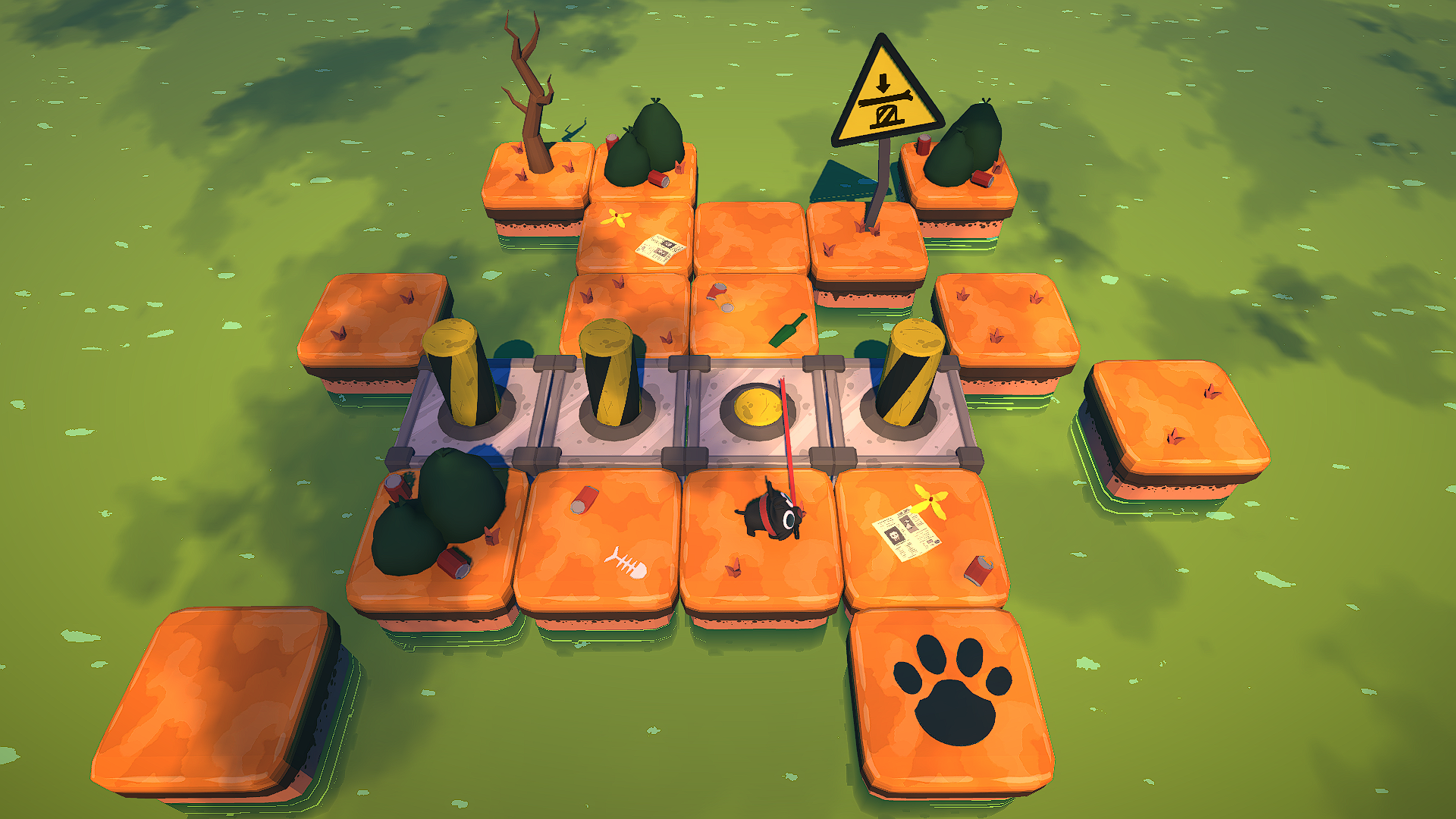 Maintenant, tout ce que le jeu nous propose, c’est de se sentir à l’aise aux commandes ? Non. En fait, il nous propose également des énigmes. Plus de 70 énigmes Ils disent et j’en ai compté 71, donc techniquement ce qu’ils disent est vrai. Cependant, le dernier des cinq mondes dans lesquels le jeu est divisé est assez simple, donc même si au niveau narratif c’est climatique Pour les besoins du jeu, nous aurons environ 62 puzzles répartis dans quatre mondes: le quartier, la fourrière, la décharge et la vallée des lucioles. Chacun d’eux a une série de dynamiques environnementales uniques qui contribuent à donner une touche unique à tous les niveaux. Par exemple, dans le chenil, il y aura des égouts qui fonctionneront comme téléportation, dans la décharge, il y aura des grues qui déplaceront des morceaux de l’environnement d’un endroit à un autre, et dans la vallée des lucioles, il y aura des plates-formes qui pourront transporter votre bâton mais pas toi, parmi quelques autres que je préfère, vis pour toi. Je dois aussi admettre que lors de certains tests, j’ai eu une entorse mentale et je ne sais pas trop comment j’ai réussi le niveau, mais même dans ces situations C’est très enrichissant d’arriver au bout. D’autant plus que chaque nouveau niveau est différent du précédent, vous obligeant dans chaque situation à laisser la manette immobile et à observer le chemin à parcourir. Selon votre degré de méthode, vous pourrez dessiner votre carte mentale ou, si vous êtes plutôt comme moi, vous utiliserez des essais et des erreurs. Et la clé est dans l’erreur, car même s’il y a des moments où vous ne voyez pas la solution, vous savez qu’elle est là : Chaque plateforme a une signification, même si vous ne la voyez pas pour le moment, mais ce n’est qu’avec sa position que vous réalisez qu’elle vous influencera d’une manière ou d’une autre. dans le développement des niveaux.