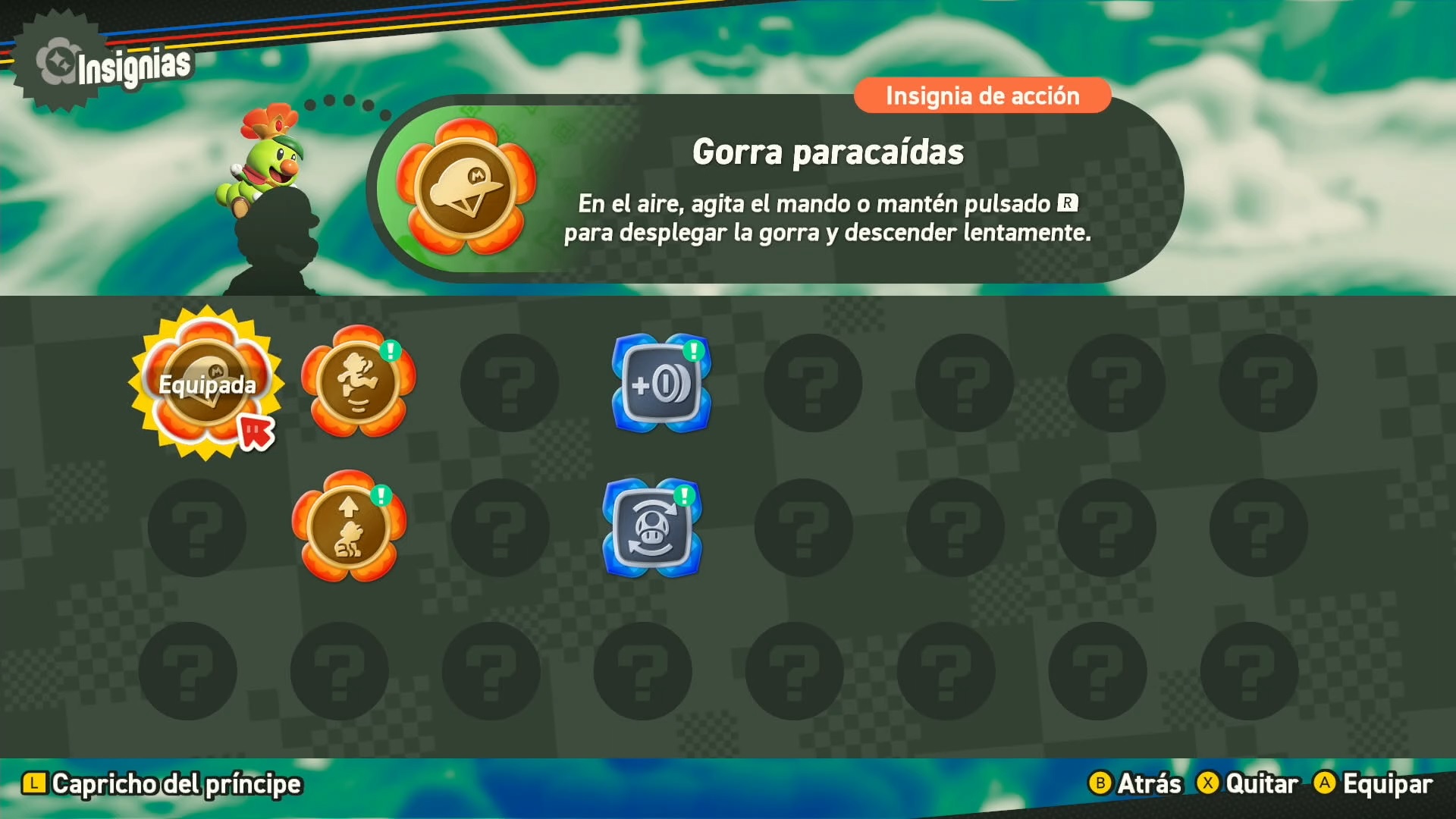 En ce sens, Mario et ses amis ont une série de des compétences supplementaires connu sous le nom d’insignes. Ils s’obtiennent en jouant, en complétant des défis Badge ou encore dans le Magasin de fleurs du Royaume, où vous pouvez être sûr que nous laisserons les pièces. Ils peuvent être activés en appuyant sur R, mais il en existe d’autres Badges d’objet passifs et ils vous donneront un avantage dans le niveau tant que vous l’aurez équipé. Malheureusement, vous ne pouvez en transporter qu’un seul équipé et cela permettra à Mario voler avec sa casquette, sautez plus haut et d’autres avantages très alléchants. Pendant le jeu, nous relevons un défi pour débloquer le saut d’escalade repousser les murs. En plus de servir de tutoriel, vous pourrez l’ajouter à votre liste de pouvoirs.