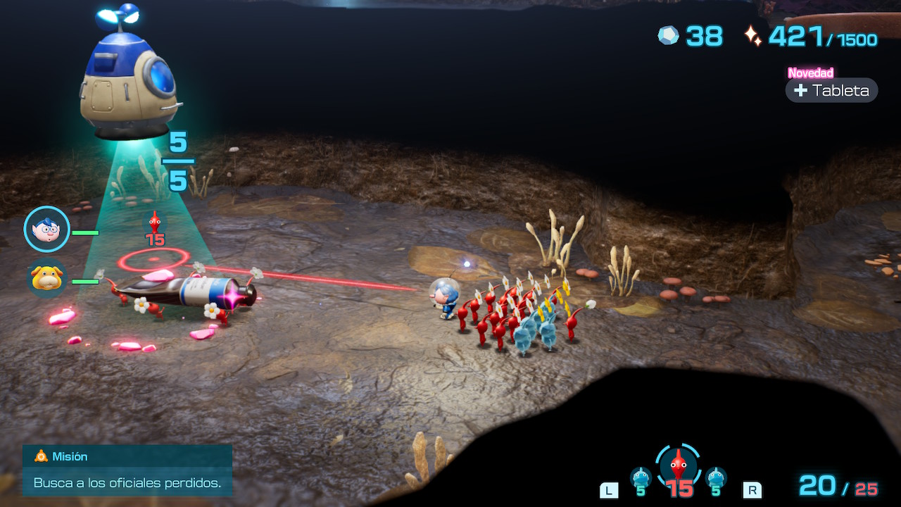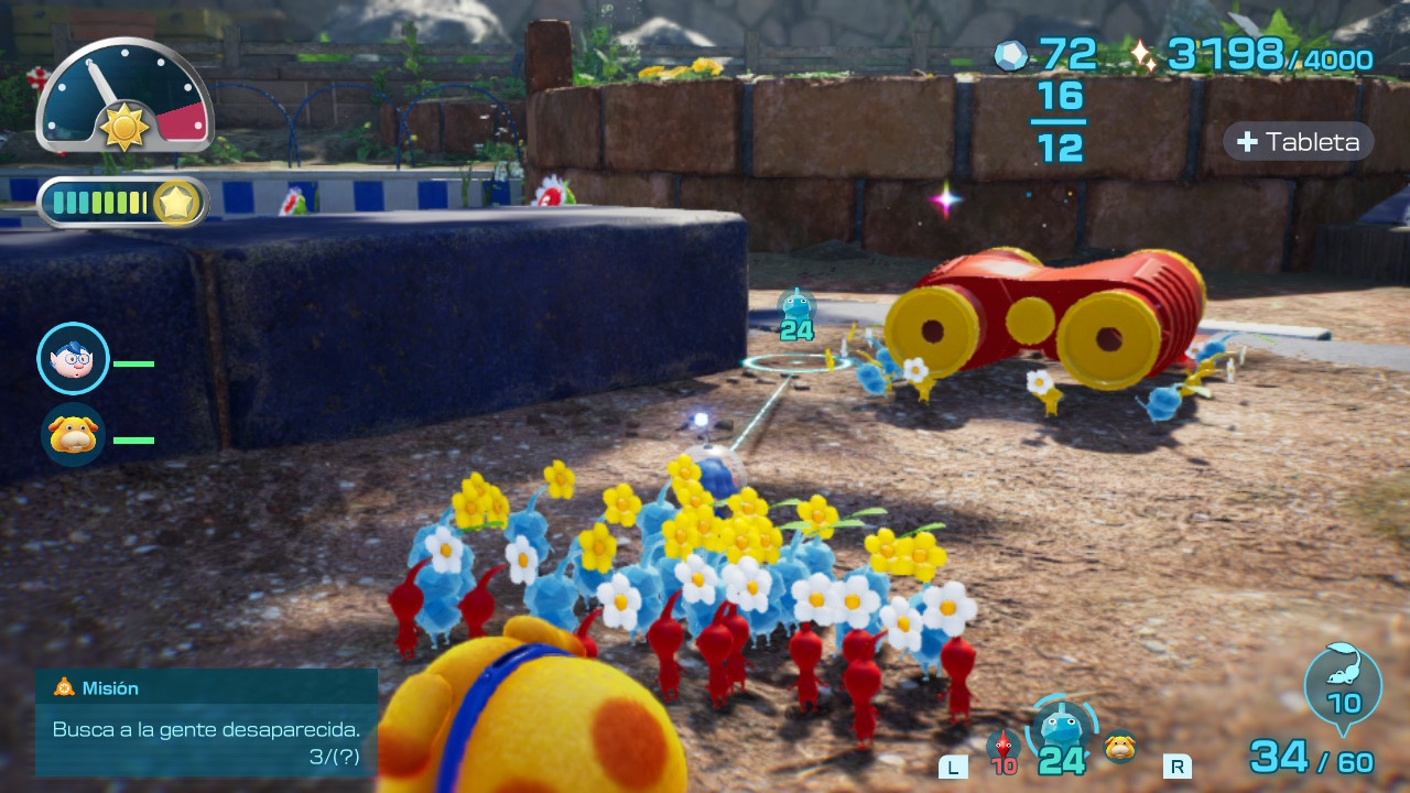 Ce que je n’ai pas demandé par exemple (et d’enlever au plus vite la partie amère de l’assiette) c’était de multiples compagnons de voyage, ou des conversations récurrentes qui par le biais de blagues (généralement bien implémentées) développent lesdits personnages. Tout comme il n’a pas demandé d’arbres de compétences ou de missions secondaires. Je ne l’ai pas demandé car cela éloigne la proposition de son noyau dur, de son caractère unique et spécifique, de ce qui fait de Pikmin un titre inclassable. Cela dit, et compte tenu de l’époque actuelle, je me retrouve avec une chanson sous les dents car, malgré le fait que tous ces ajouts peuvent devenir un peu lourds lors des premières mesures (surtout pour le vétéran de la saga), finalement dilués , s’intégrant naturellement dans les objectifs du jeu et laisser place à ce qui compte vraiment; le puzzle.