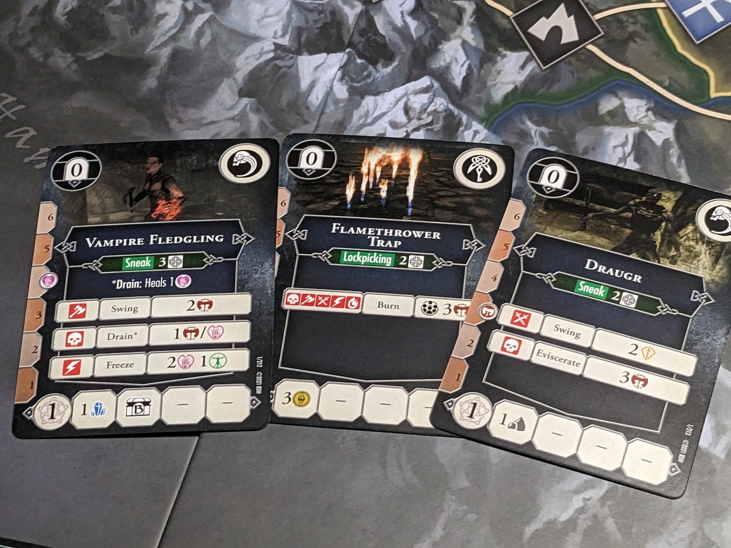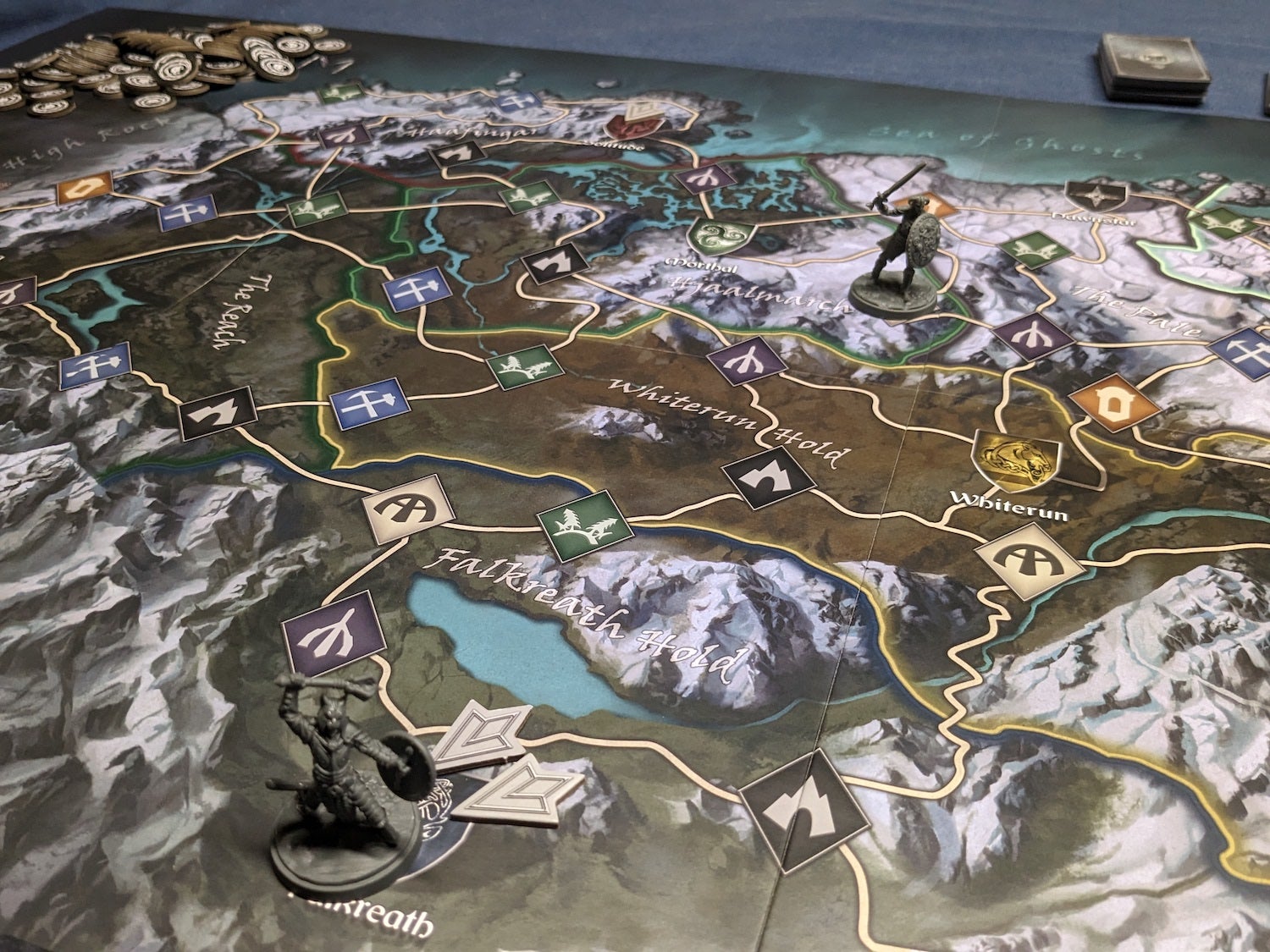 L’inconvénient de cette approche légère est que le récit principal de la campagne est sous-alimenté et pas particulièrement convaincant. Heureusement, tout comme dans le jeu vidéo, la majeure partie du temps de jeu est passée à ignorer le scénario prescrit et à se concentrer sur la multitude de quêtes secondaires qui apparaissent frénétiquement sur tout le plateau. C’est là que le jeu de société Skyrim trouve son étincelle.