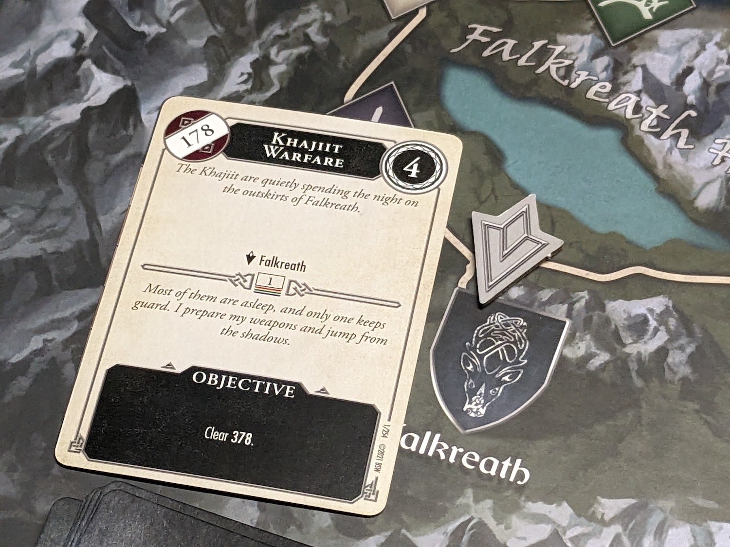 Bien que vous deviez parfois passer des tests basés sur des dés et éventuellement combattre un ennemi, il est normal qu’on vous propose une mission personnelle. Ces quêtes secondaires fonctionnent principalement comme des tâches de voyage, telles que “aller à Morthal et transmettre un message à mon cousin”. Vous avez généralement plusieurs missions actives avec de multiples options, ce qui établit fermement le lien du jeu de société avec le jeu vidéo.