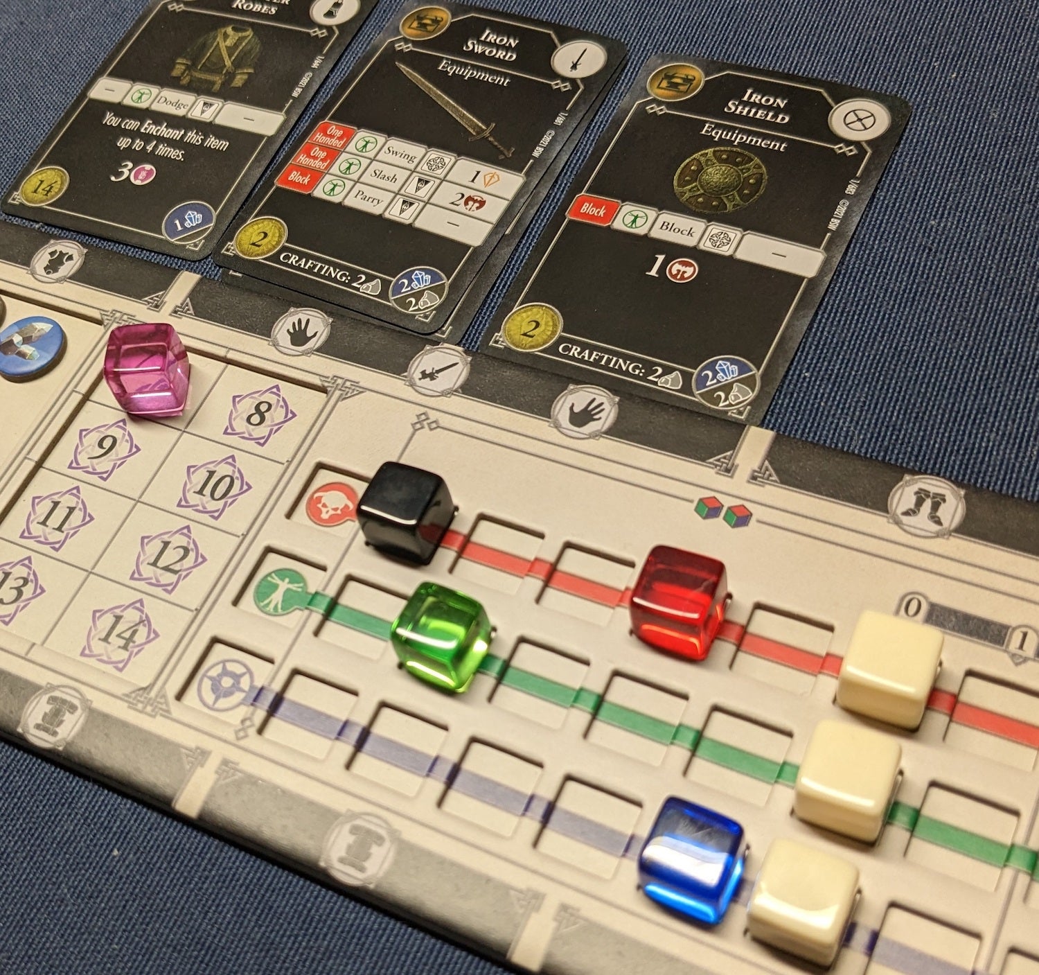 Une autre particularité est la production physique. C’est une grosse boîte, mais ses entrailles se composent presque exclusivement d’un grand plateau et d’un tas de cartes. Les figurines incluses sont utiles, mais les jetons en carton sont assez inférieurs à ceux de la plupart des jeux de société amateurs. Des jetons de monstre errant, qui sont trop petits, aux jetons de ressource, qui sont accidentellement retournés révélant un nombre différent pour indiquer leur quantité, tout cela semble un peu chétif. Ces détails contrastent fortement avec le magnifique tableau de bord massif, qui transmet avec précision la sensation d’espace de l’environnement.