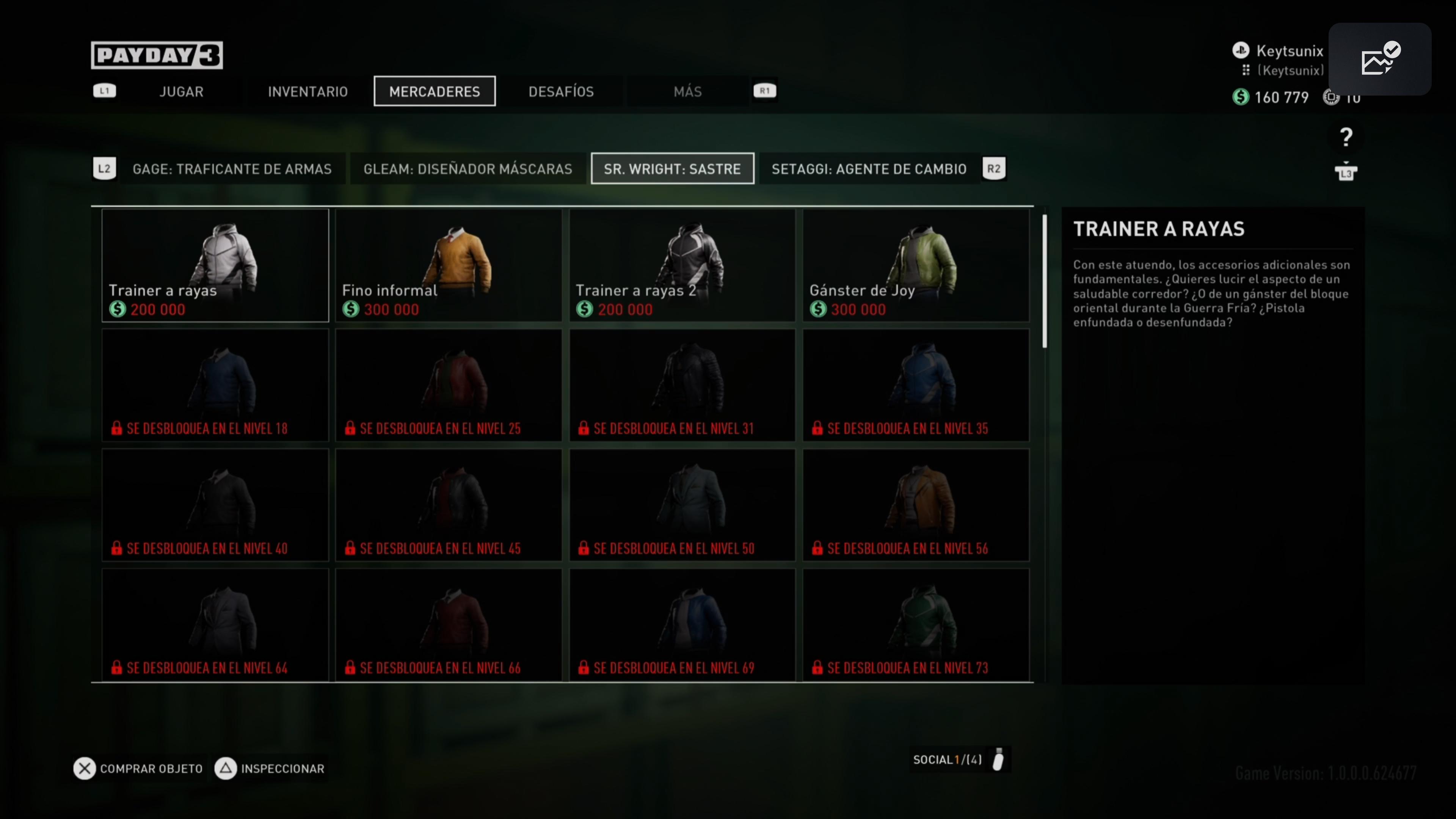L’argent virtuel de Payday 3, qui s’obtient en complétant les différents braquages, n’est pas créé pour que vous puissiez le dépenser uniquement en armes. Si tu mets une belle liasse de billets sur la table vous pouvez obtenir d’autres objets pour votre personnage, des masques et vêtements aux sprays et autocollants colorés. Ne pensez pas que vous pouvez tout acheter dès le premier instant. Chaque article trouvé dans le menu “Commerçants” Débloqué lorsque vous atteignez un certain niveau, et cela augmente avec les points d’infamie obtenus en complétant des braquages et des défis. Pour le moment, il n’y a pas beaucoup de variété, mais ce n’est pas comme si nous en avions besoin car Payday 3 ne propose que huit braquages. Les responsables du jeu publieront du nouveau contenu à l’avenir, notamment de nouveaux skins, armes, autocollants et bien plus encore.