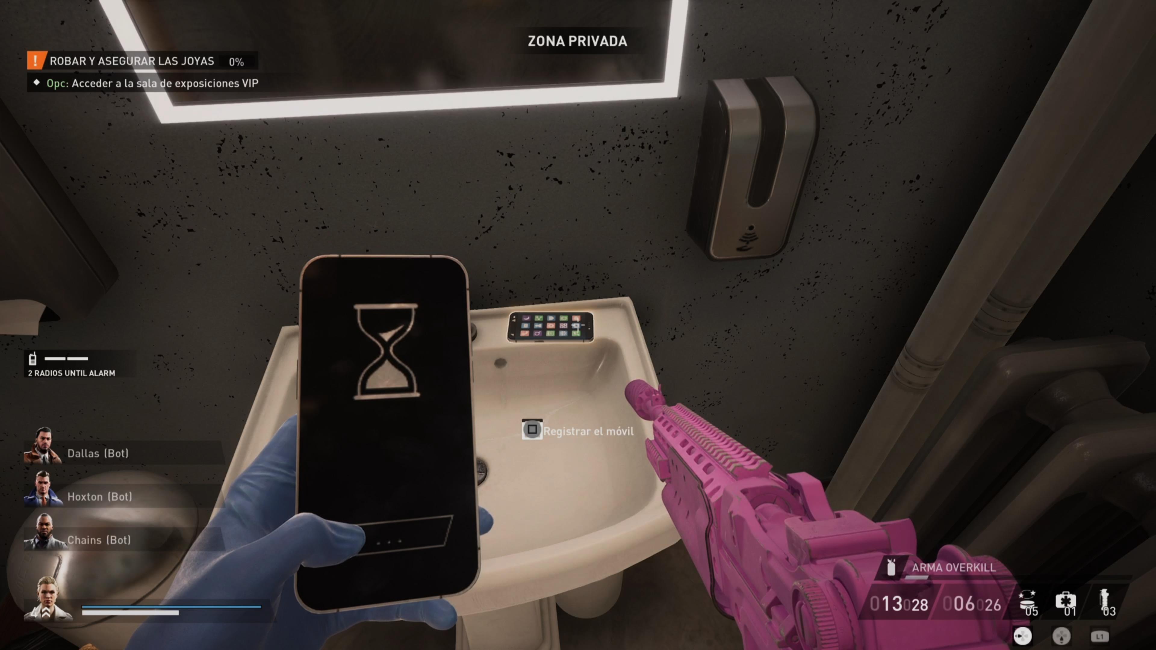 Vous aimerez certains braquages plus que d’autres, c’est inévitable, mais ils ont tous quelque chose de spécial qui finit par attraper le joueur. Je pense vraiment que le design de la carte est tout à fait spectaculaire, non seulement en raison de son aspect saisissant, mais aussi parce que vous invite à enquêter sur chaque recoin et vous oblige à toujours être vigilant. Les cartes comportent différentes zones, certaines publiques et d’autres plus privées qui feront réagir rapidement les gardes si vous vous y trouvez. L’équipe de Payday 3 a travaillé pour présenter une IA beaucoup plus développéecapable de vous guider vers un lieu public si vous vous trouvez dans un lieu privé, de vous chercher s’il détecte un mouvement étrange ou de saboter vos instruments donc vous ne pouvez pas terminer le braquage. En général, les gardes et la police réagissent très bien à vos actions criminelles, mais il arrive parfois que les PNJ se déplacent ou agissent de manière erratique. Il y a quelques bugs dans l’IA qui doivent être revus et corrigés afin qu’ils cessent de gâcher l’expérience. Et quant aux robots qui nous accompagnent lorsque nous sommes seuls dans un braquage, n’attends pas grand chose d’euxpuisqu’ils font ce qui est juste et nécessaire.