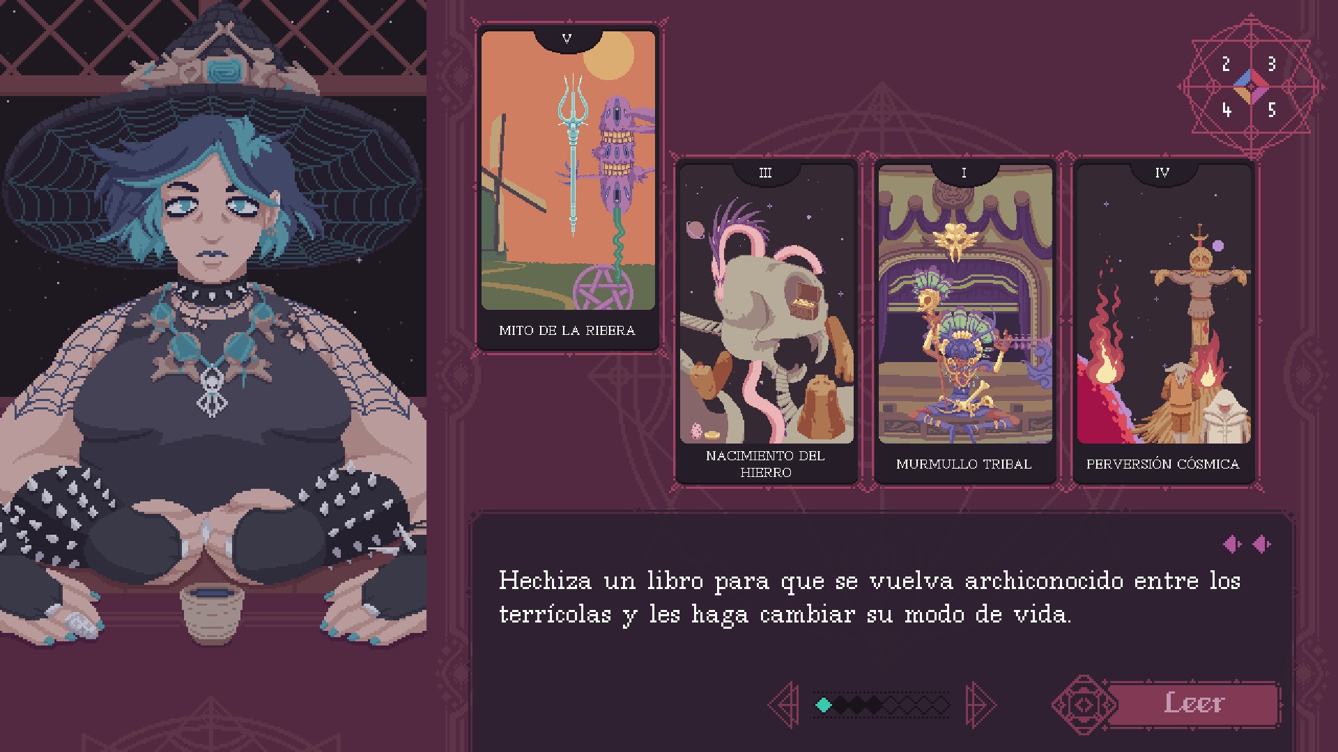 Malgré le fait que de petites couches jouables sont ajoutées aux conversations abondantes, au final, le plus grand poids narratif et jouable leur incombe; Avant de distribuer les cartes aux personnages, nous aurons toujours un petit entretien avec eux, car il est important de connaître leurs motivations et leurs contextes. Nous prendrons constamment des décisions qui affecteront notre relation avec le reste des sorcières et le monde ; En piochant les cartes au hasard, nous devrons les placer dans les différentes questions que nos clients nous posent.